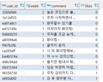 주차별 '오늘의 다짐'의 좋아요 최솟값 구하기