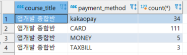 웹개발 종합반의 결제수단별 주문건수 세어보기