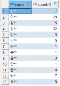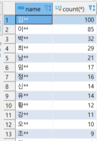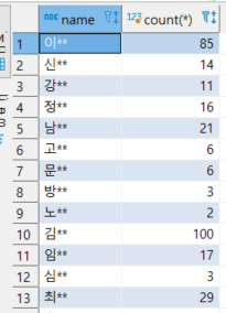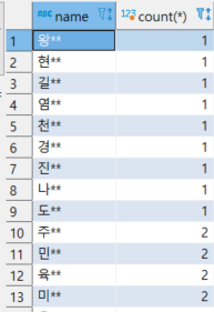 3. name과 count(*)를 select 해준다.