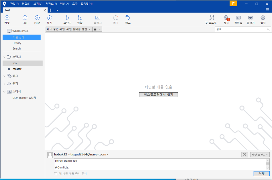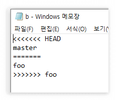 저장소것을 이용하여 해결 foo 브랜치 것을 이용하여 해결
