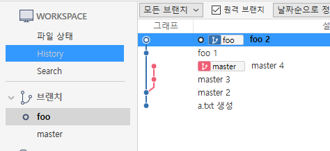 이렇게 되어 있으면 foo 브랜치에는 5개 커밋