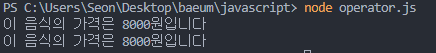 console.log(`이 음식의 가격은 ${foodPrice}원입니다` ) // +는 필요없고 백틱도 한번만 넣으면 된다.
