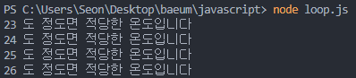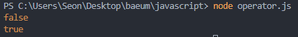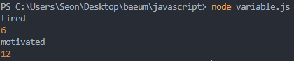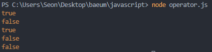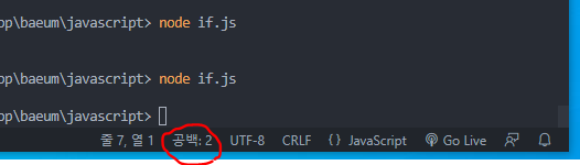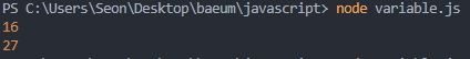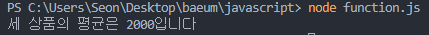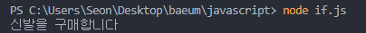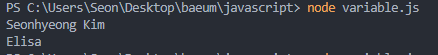 node + 파일명 엔터 ⇒ 파일 실행하여 글자 뜬다