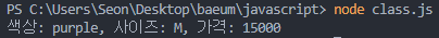 console.log(`색상: ${this.color}, 사이즈: ${this.size}, 가격: ${this.price}`)