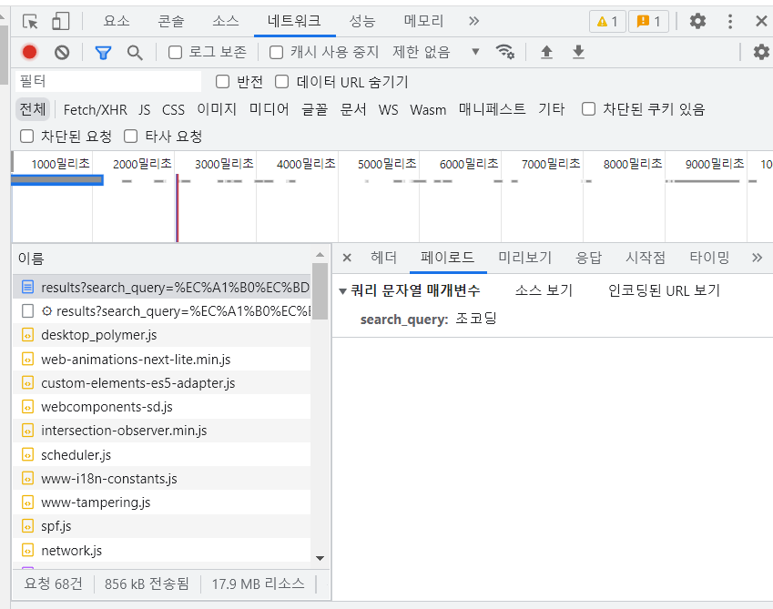 검사 창에서 내가 검색했던 검색어를 확인 할 수 있다.