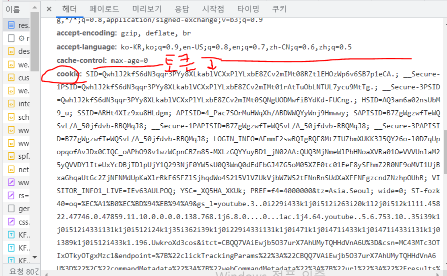 내가 검색한 것을 불러오면서 사용된 토큰도 확인할 수 있다.(토큰은 암호화된 정보)