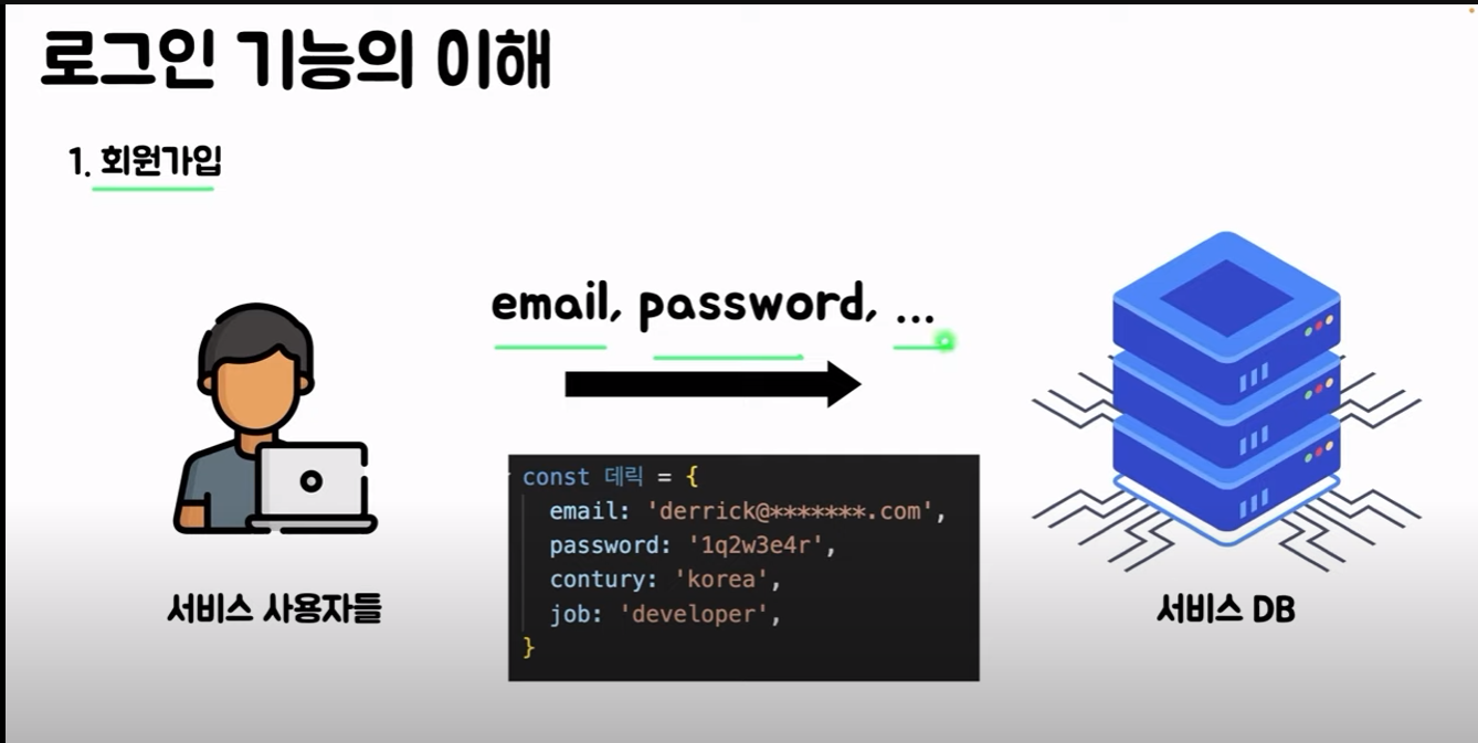 이메일, 패스워드와 같은 정보를 서비스 DB에 준다